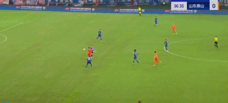 第45+4分钟,7场13球!卡扎轻巧停球后推射破门!山东再度扳平!